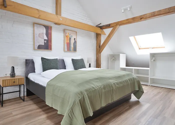 Die 7-Zimmer-Stilvolle Apartments mit eigenem Parkplatz I home2share Dessau-Rosslau in Dessau-Rosslau befindet sich ungefähr 1 Kilometer vom Museum für Stadtgeschichte Dessau (Johannbau) und etwa 25 Fußminuten vom Bauhaus entfernt.